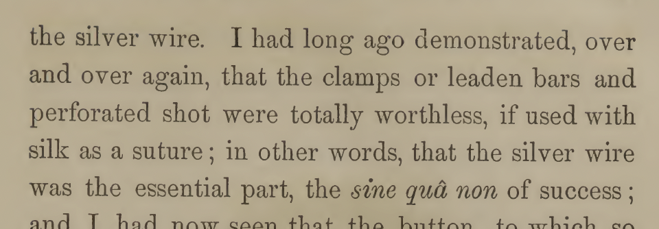 This is false. Sims had barely mentioned the use of silver wire in his original fistula paper, and did not characterize it as an essential feature of his cure.